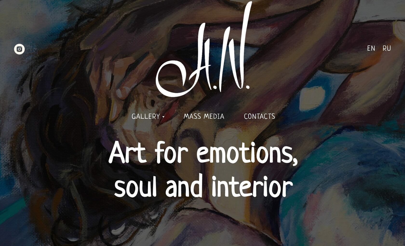 Multilingual portfolio site for artist A.N. Gallery of works with convenient sorting and the ability to see everything in small details